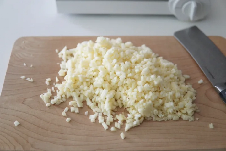 사과는 껍질과 속씨를 제거하고 과육을 잘게 다져주세요.