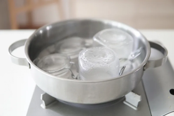 먼저 사과잼을 담을 유리병을 열탕소독해주세요.