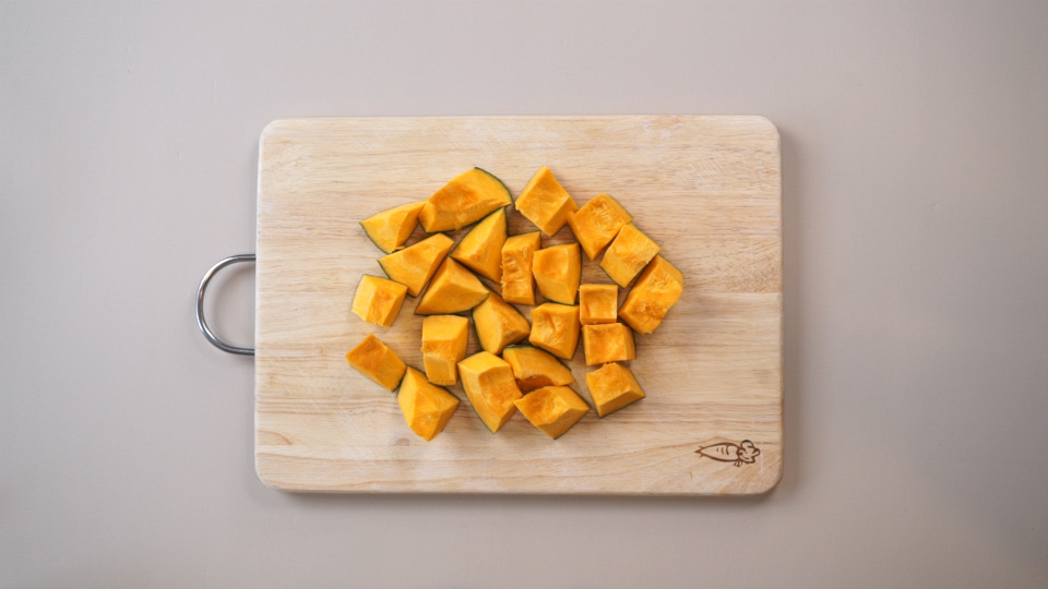 깨끗하게 세척한 단호박은 먹기 좋은 크기로 썰어주세요.