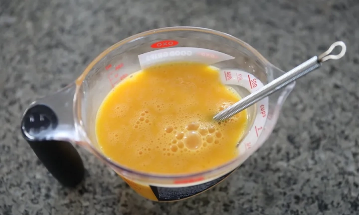 달걀물은 체에 걸러 알끈을 제거해주세요.
