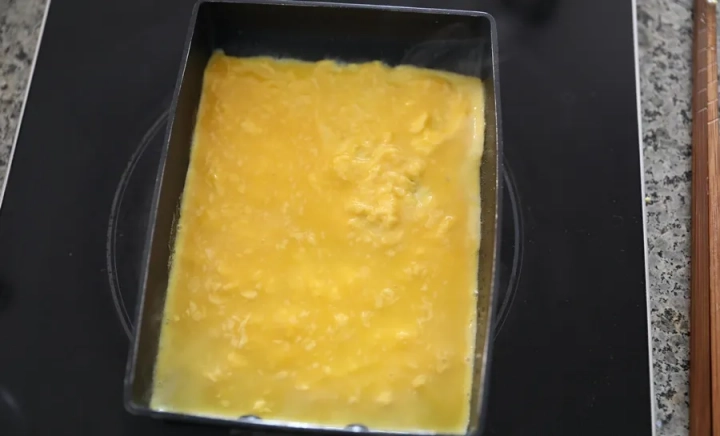 중약불로 조절한 후 달걀물을 얇게 부어주세요.