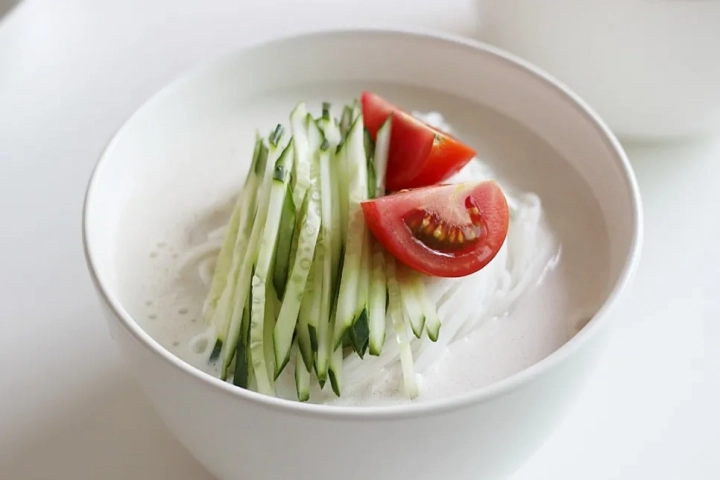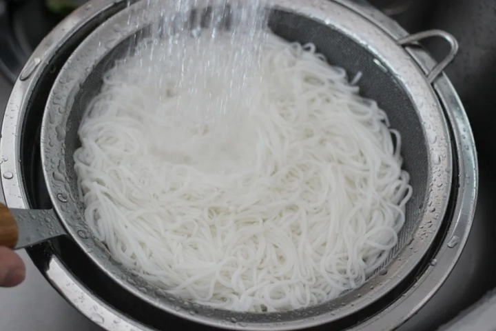 삶은 소면은 찬물에 헹궈 물기를 제거해주세요.