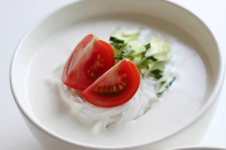 [재료]: 소면, 두부 300g, 땅콩버터 2큰술, 견과류,