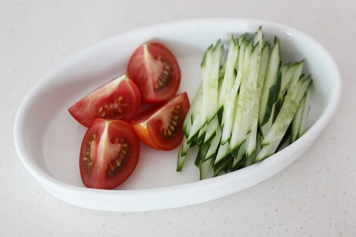 통깨 1큰술, 설탕 1큰술, 소금 1/2큰술, 오이, 토마토