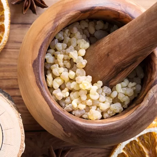 보스웰리아에는 유칼립투스와 페퍼민트 등의 식물속에 다량 함유된 테르펜이라고 하는 성분이 다량 포함되어 있는데 이 테르펜 성분이 심리적인 안정감을 취하는 작용 뿐만 아니라 스트레스를 풀어주는 진정작용에도 탁월하다고 합니다.