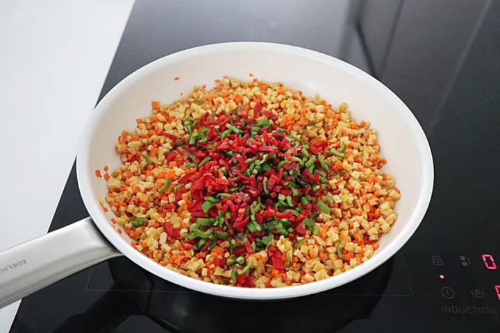 달군 팬에 식용유를 두르고 당근과 어묵을 넣고