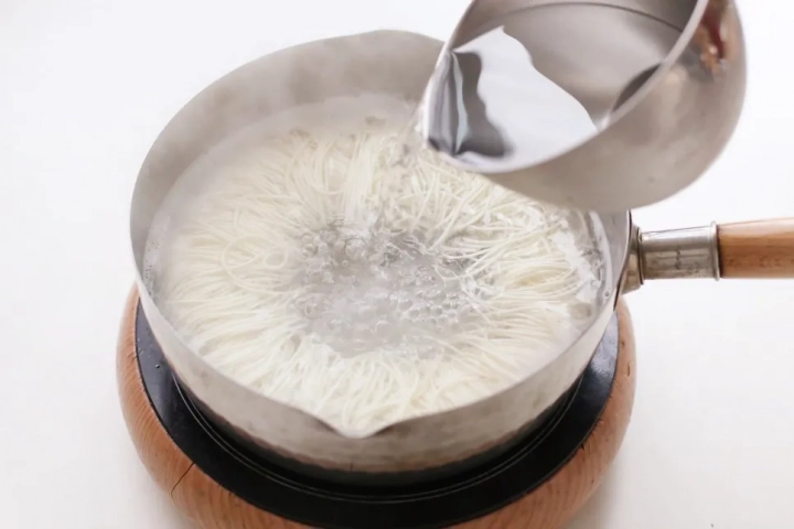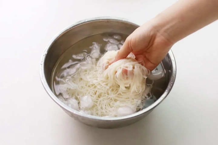삶은 국수는 얼음물이나 찬물에 담가 씻어