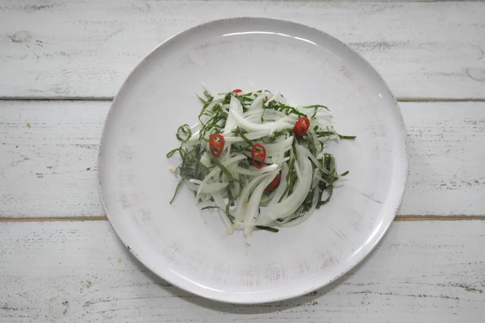 참기름에 버무려둔 양파, 깻잎, 홍고추를 더하고