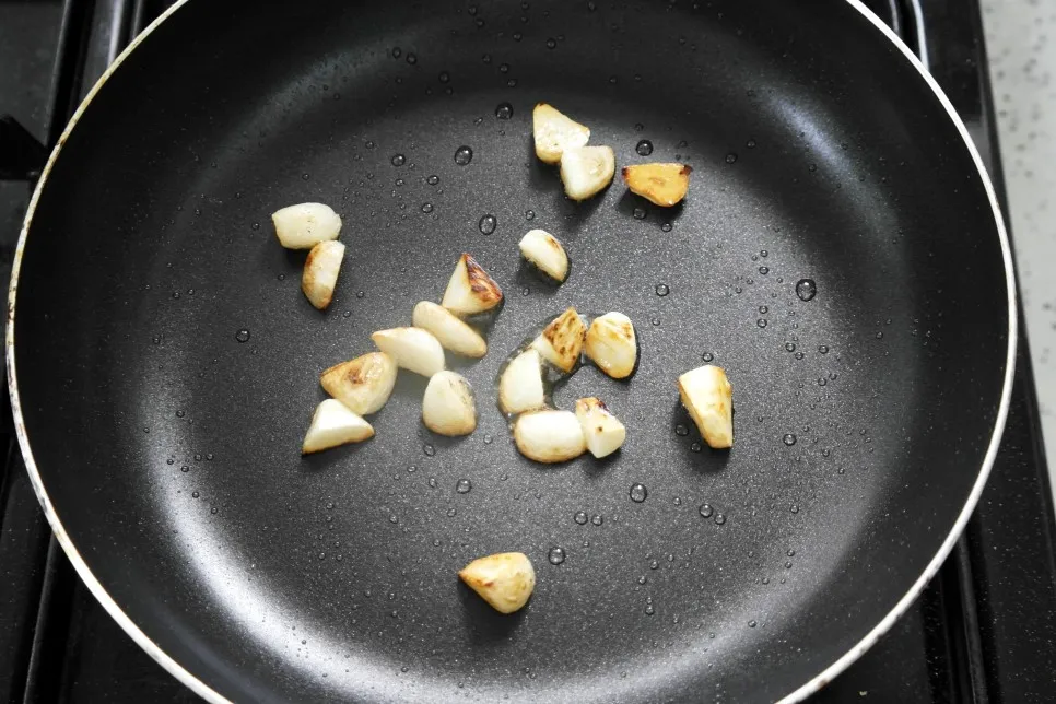 팬에 기름을 두른 후 마늘을 살짝 태우듯이 볶아주세요.