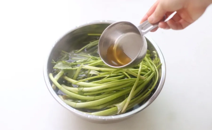 손질한 미나리는 식초를 풀어