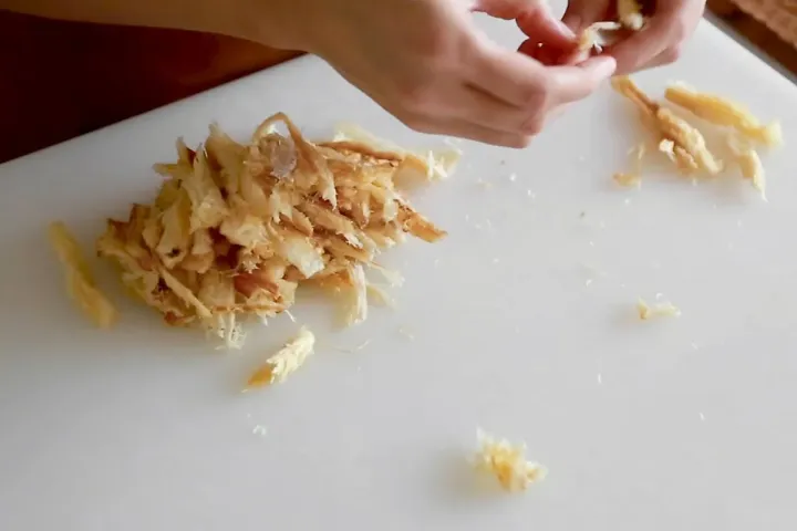 먹기 좋은 크기로 잘라주고 딱딱한 잔가시를 골라주세요.