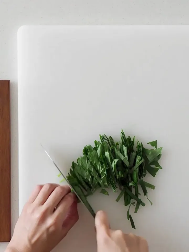 상추와 깻잎은 가늘게 채를 썰어주세요.