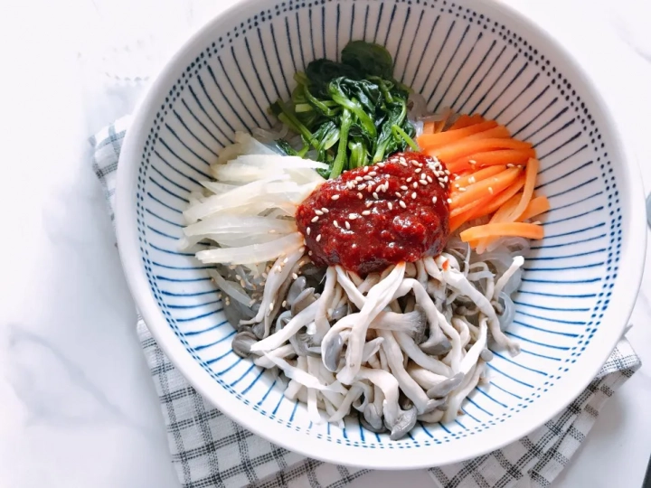 그릇에 당면을 담고 그 위에