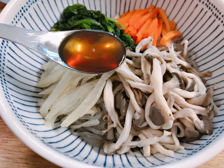 느타리버섯, 당근, 시금치는 끓는 물에 데쳐주고