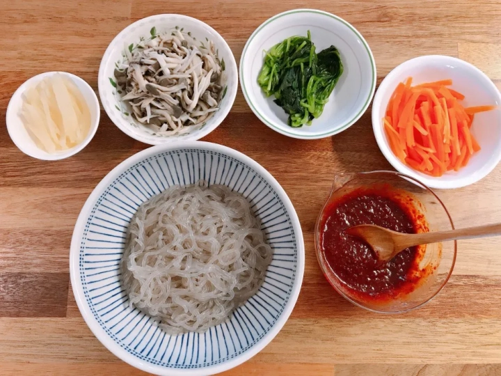 미리 불려둔 당면도 삶아서 찬물에 헹궈 물기를 제거해주세요.