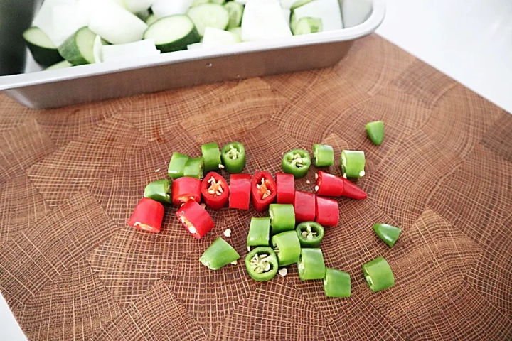 청양고추, 홍고추는 적당하게 송송 썰어주세요.