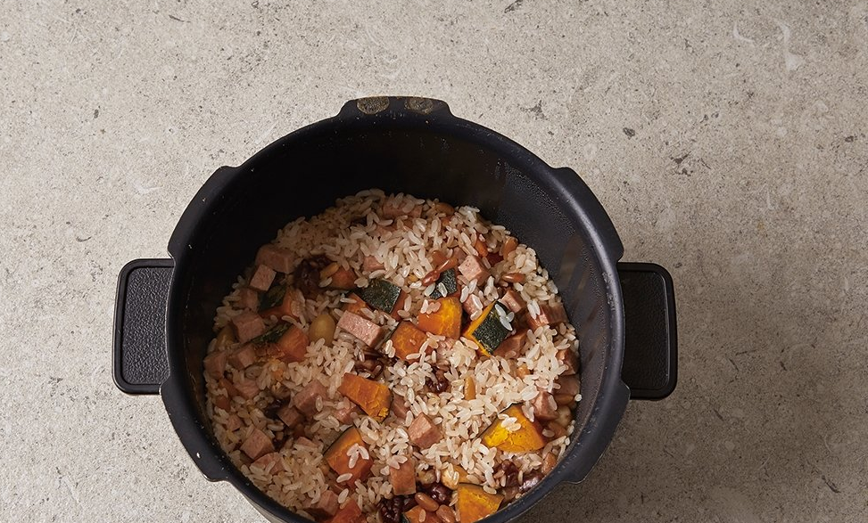 손질한 재료와 물 1컵을 넣어 취사를 시작하세요.