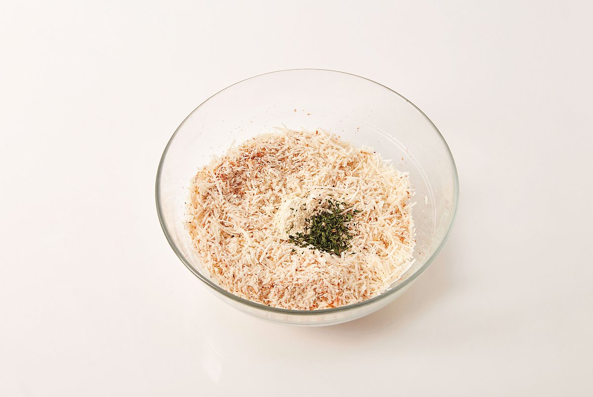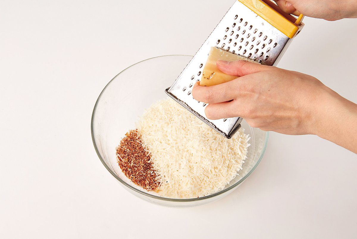 마른 새우는 믹서로 곱게 갈고 파르메산치즈도 갈아 골고루 섞어주세요.