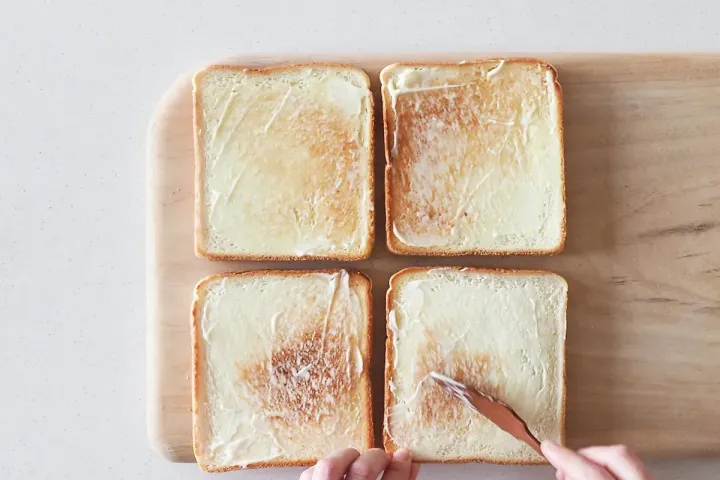 식빵은 앞뒤로 노릇하게 구워 한 김 식혀주세요.