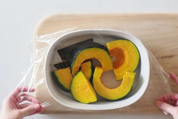 씨를 끍어낸 단호박은 적당한 크기로 잘라