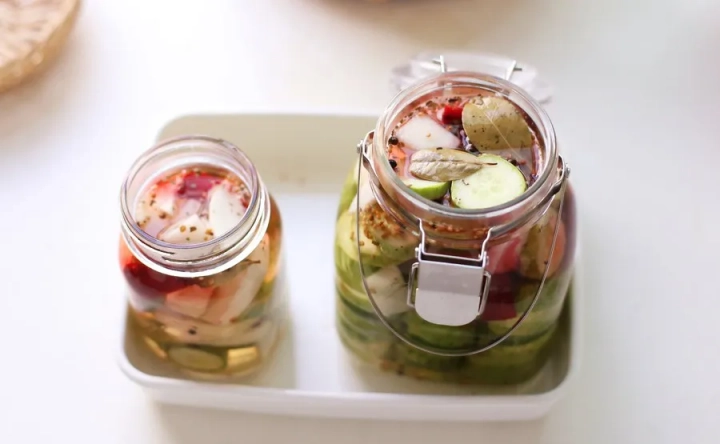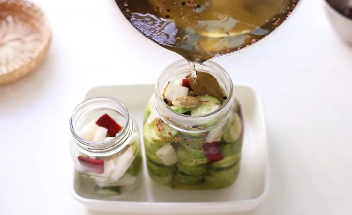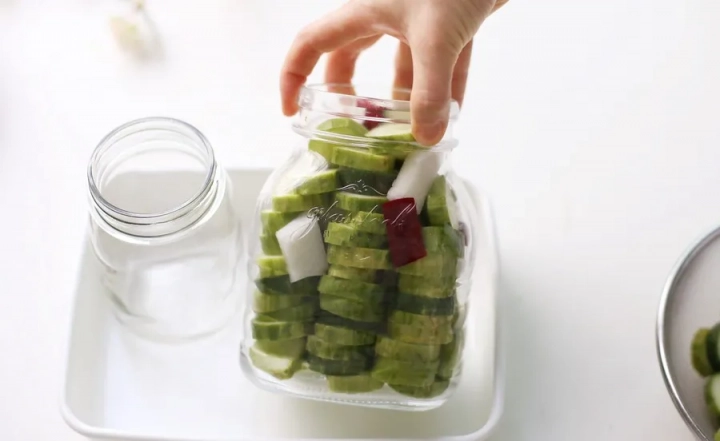 피클을 담을 유리병은 열탕소독하고 물기를 바싹 말려주세요.