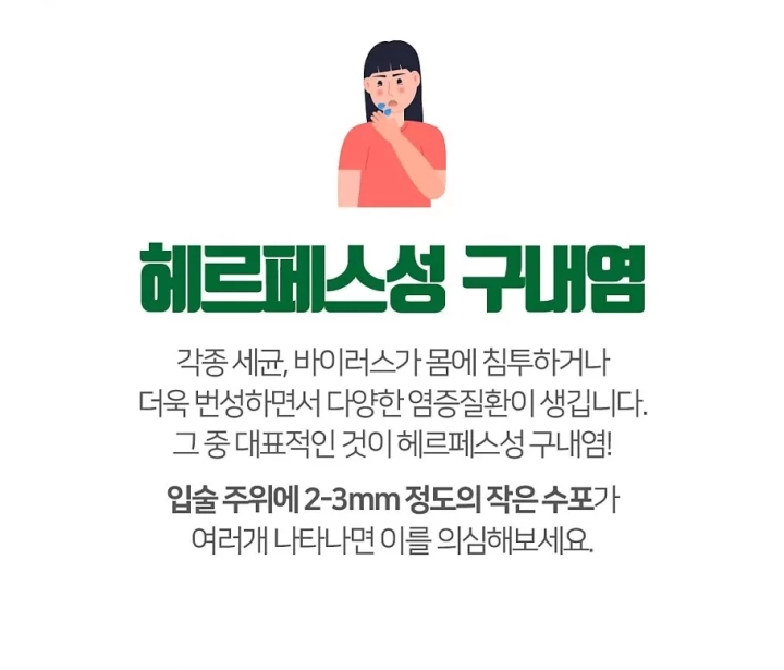 면역력이 떨어지면 각종 세균이나 바이러스가 몸에 침투하거나 체내에 있던 것이 악화되면서 다양한 염증질환이 생길 수 있다고 하는데요. 대표적인 것이 '헤르페스성구내염'이라고 합니다. 헤르페스성 구내염은 헤르페스바이러스 보유자가 면역력이 떨어졌을 때 생기는데 증상은 입술 주위에 2~3mm 작은 수포가 여러 개 나타나는 것이라고 합니다. '봉와직염'이 생길 수도 있는데 봉와직염은 피부 아래 조직에 황색포도상구균 등의 세균이 침투해 발생하는 염증성질환이라고 합니다. 여성은 '질염'을 겪을 수 있다고 합니다. 질에는 원래 균이 많고 질 내부를 약산성으로 유지시켜 병균에 맞설 수 있도록 하는 유익균이 대부분이어서 평소에는 문제가 되지 않지만 몸의 면역력이 떨어지면 유익균이 감소하고 곰팡이나 트리코모나스 같은 유해균이 많아지면서 질염이 발생한다고 합니다. 대상포진이 발생할 수도 있다고 하는데요. 대상포진은 어렸을 때 몸에 침투해 숨어 있던 수두바이러스가 다시 활동해 물집·발진(피부가 붉어지며 염증 생기는 것)·근육통 등을 유발하는 병이라고 합니다. 수두 바이러스는 수십 년 이상 증상 없이 숨어 있다가 면역력이 떨어졌을 때를 틈타 갑자기 활동하고 피부에 물집이나 붉은 띠가 생기면 의심하고 72시간 이내에 항바이러스제등의 약물로 치료를 시작해야한다고 합니다.