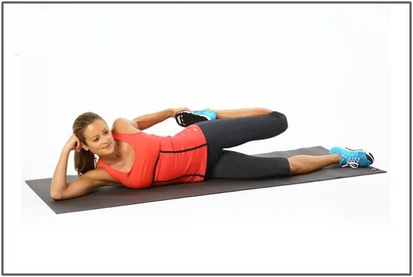 엎드린 상태에서 몸을 젖혀 왼쪽 팔로 왼쪽 발을 잡아주고 천천히 호흡하며 10초간 허벅지 앞쪽을 늘려주세요. 위의 주변 근육이 이완되어 소화에 도움을 준다고 합니다.