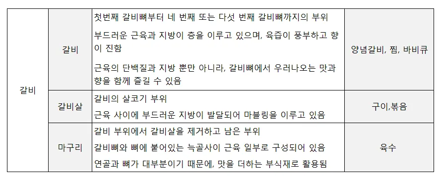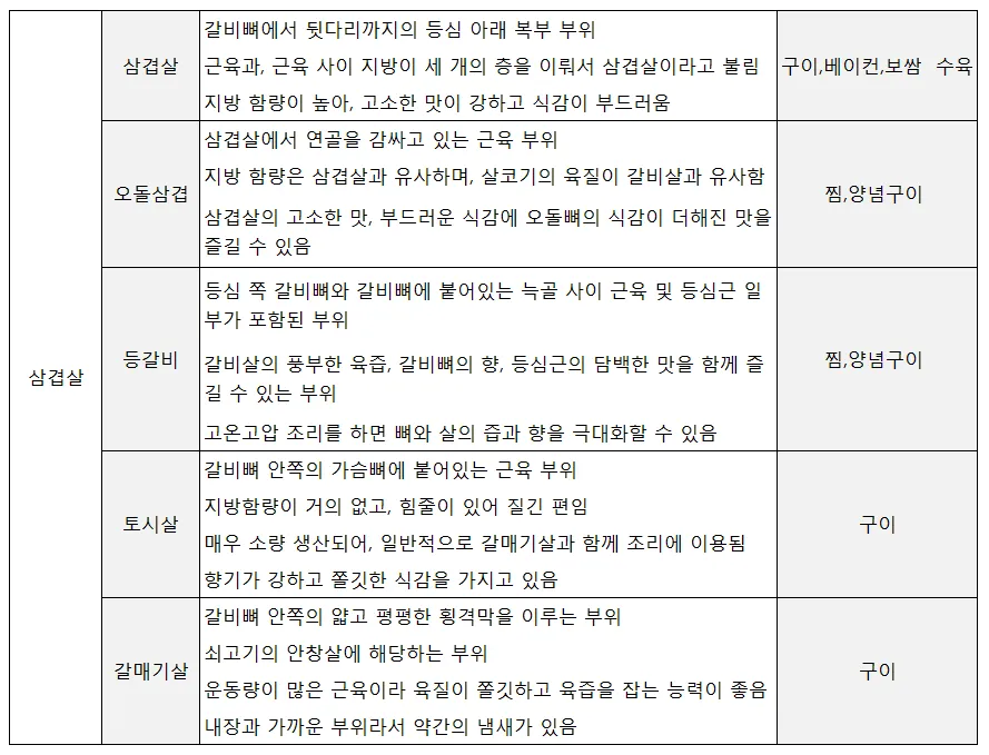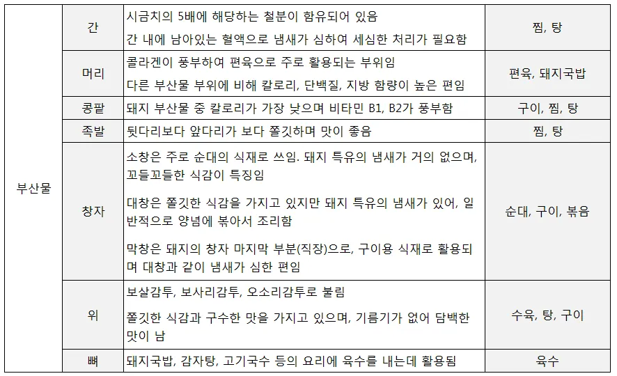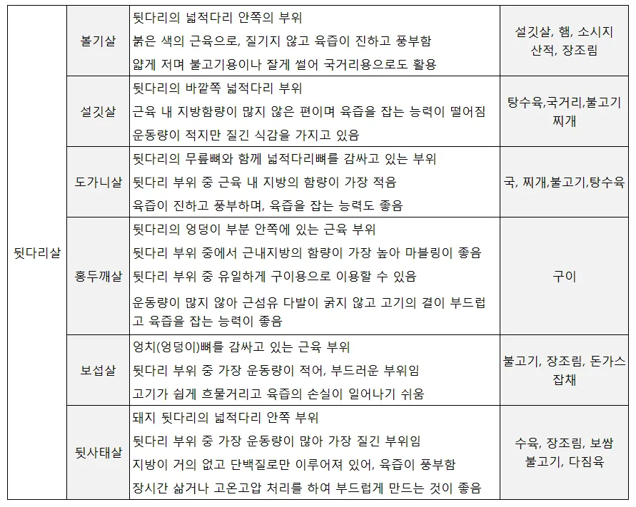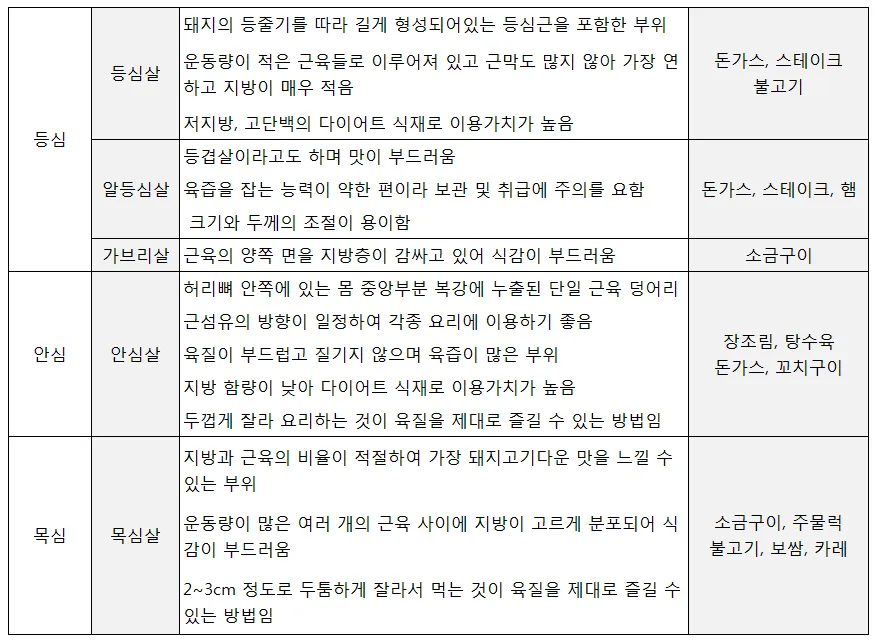 돼지고기 부위별 용도