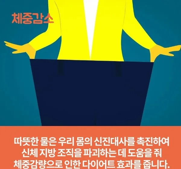 공복에 따뜻한 물 한 잔은 지방 분해에 도움이 된다고 하는데요. 대부분 숙면을 취하면서 일정량의 땀을 배출하게 되는데 그 때문에 유독 아침에 눈을 뜨면 갈증을 느끼게 되고 이때 빈속에 따뜻한 물을 마시게 되면 신진대사가 활성화되어 지방 분해에도 도움이 된다고 합니다.
