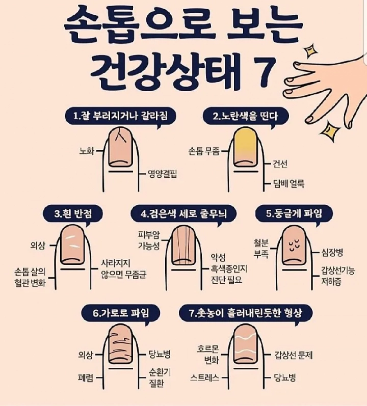 영양이 부족하면 손톱이 갈라지고 부스러지기 쉽다고 하는데요. 갑상선기능항진증이 의심되는 경우가 있다고 합니다.
