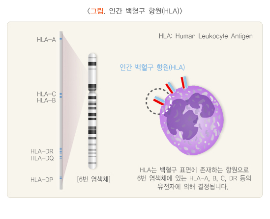 거부반응은 수혜자의 몸 안에서 기증자의 장기가 가지고 있는 항원이 '남의 것'으로 인식되어 생기는데, '조직적합성 항원'이 가장 대표적인 거부반응을 일으키는 항원입니다. 조직적합성 항원은 인간 염색체 6번에 존재하는 인간 백혈구 항원(Human leukocyte antigen, HLA)입니다. 수혜자와 기증자 사이에 HLA 항원이 일치하는 숫자가 많을수록 급성 거부반응이 적은데, 현재에는 면역억제제가 강력해져 HLA 항원의 일치도가 갖는 중요성은 과거보다는 줄어들었습니다. 수혜자의 혈액 내에 기증자의 HLA 항원에 반응하는 항체의 양이 이식 전부터 많을 때 초급성 거부반응을 일으킬 수 있기 때문에, 이식 전에 수혜자의 항체를 충분히 제거해야 합니다. 또는 HLA 항원에 대한 항체가 이식 전에는 없다가 이식 후 생성되어 급성이나 만성 항체 매개성 거부반응을 일으킬 수 있습니다.