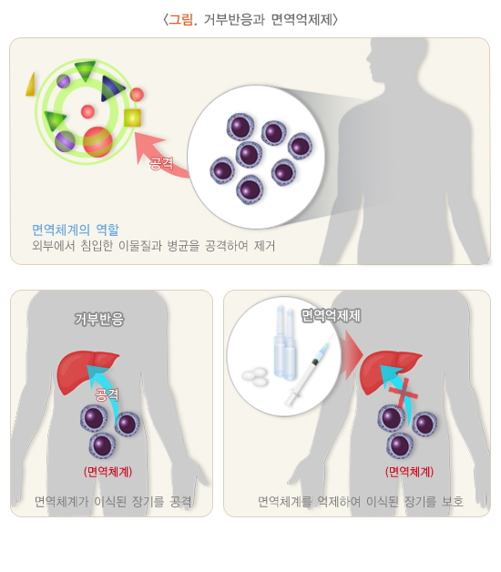이식 환자들은 거부반응을 억제하기 위해 이식 직후에는 유도 면역억제 치료와 장기간의 유지 면역억제 치료를 받습니다.