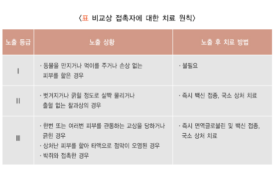 공수병 위험지역에 1개월 이내로 체류 예정이기는 하나 현지에서의 활동 내용 상 공수병 바이러스에 노출될 가능성이 크고 즉각적인 교상 후 치료를 받기 어려운 경우