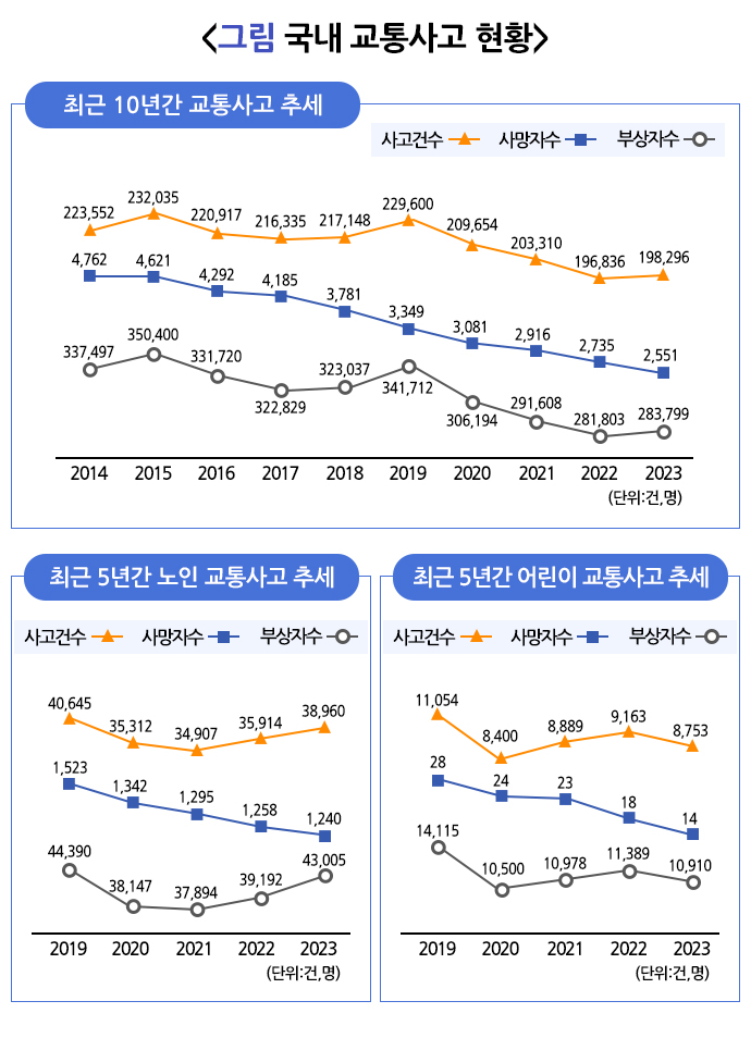6. 정부. (2024). 교통사고 현황(사망, 부상). Retrieved from e-나라지표.
