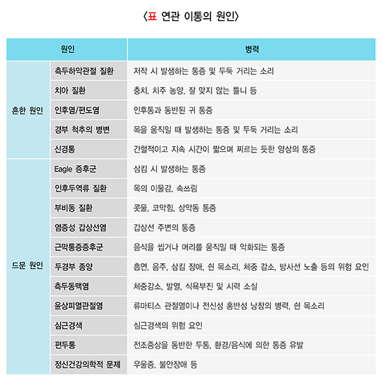 따라서 귀에 통증을 느끼는 환자는 세심한 병력 청취는 물론, 귀 뿐만 아니라 두경부의 다양한 부위에 대한 신체 검사가 필요합니다.