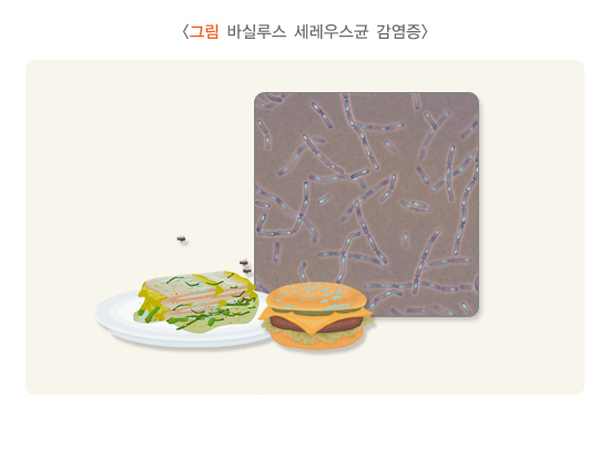 세균 감염 또는 세균이 생성되는 독소를 먹은 후 증상이 발생하기까지의 시간인 잠복기는 수시간에서 수일로 다양하지만 발열, 두통, 오심, 구토, 복통, 수양성 설사 (때로는 혈성 또는 점액성 설사 동반) 등의 증상이 유사하게 나타날 수 있습니다. 증상이 2일 이내에 소실되는 경우가 많지만 드물게 일주일까지 지속되기도 합니다. 증상만으로는 어떤 세균에 의한 감염인지 구분하기 어렵습니다,