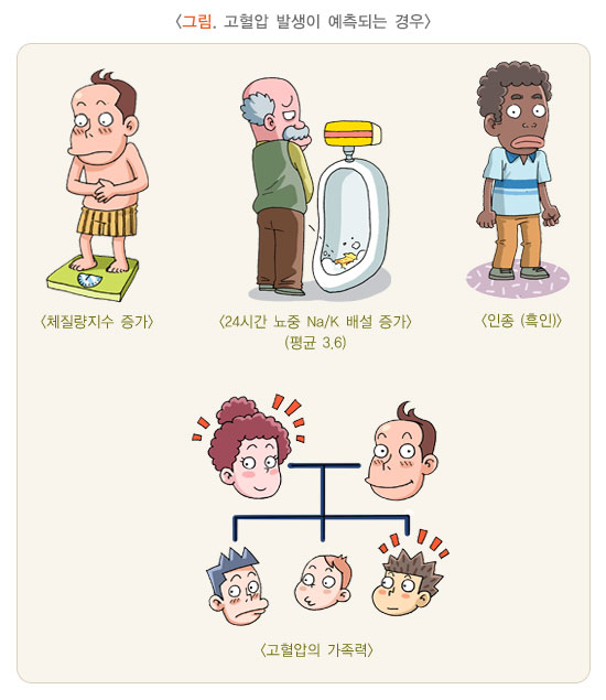 • 가족력: 가족 중 고혈압이 있는 사람은 그렇지 않은 사람에 비해 고혈압이 생길 가능성이 큽니다.
