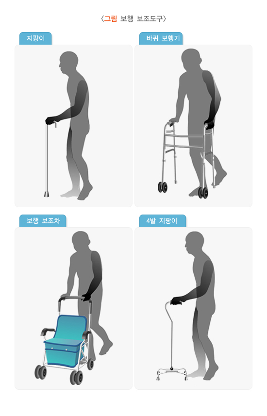 7) 필요한 경우, 지팡이나 보행기 등의 보조 기구를 사용하세요.