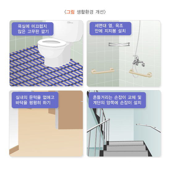4) 최소한 1년에 한 번 안과 검진을 받으시기 바랍니다. 시력이 나빠지면 넘어질 위험이 증가할 수 있습니다.