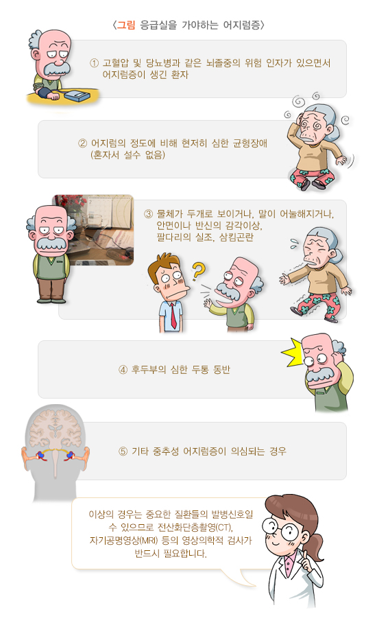 어지럼증으로 인해 응급실을 가야 하는 경우는 다음과 같습니다.