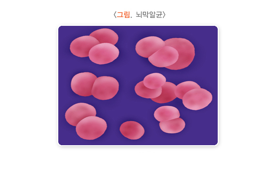 2) 폐렴사슬알균: 수막알균과 마찬가지로 일반인에서 질병을 일으키지만, 어린 소아일수록 뇌막염을 더 잘 일으킵니다.