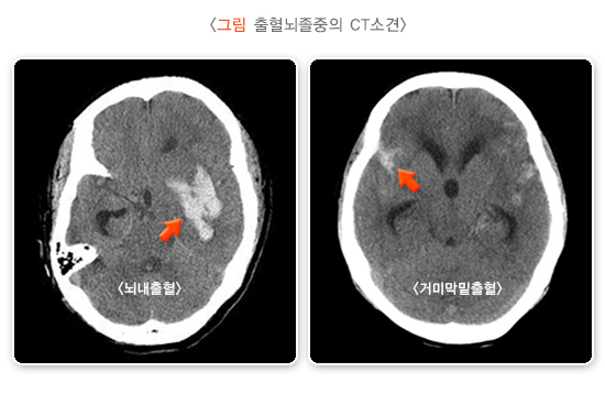 뇌출혈에는 뇌내출혈과 거미막밑출혈 등이 있습니다.