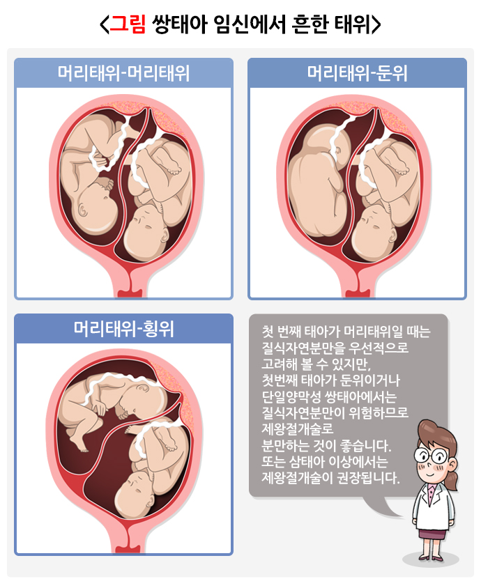 다태 임신의 분만 방법을 결정하려면 다양한 요소를 고려해야 합니다. 기본적으로 태아의 위치, 임신 주수, 태아의 크기 등이 중요하고, 그 외에도 다양한 검사를 통해 수집된 모든 요소를 고려합니다.