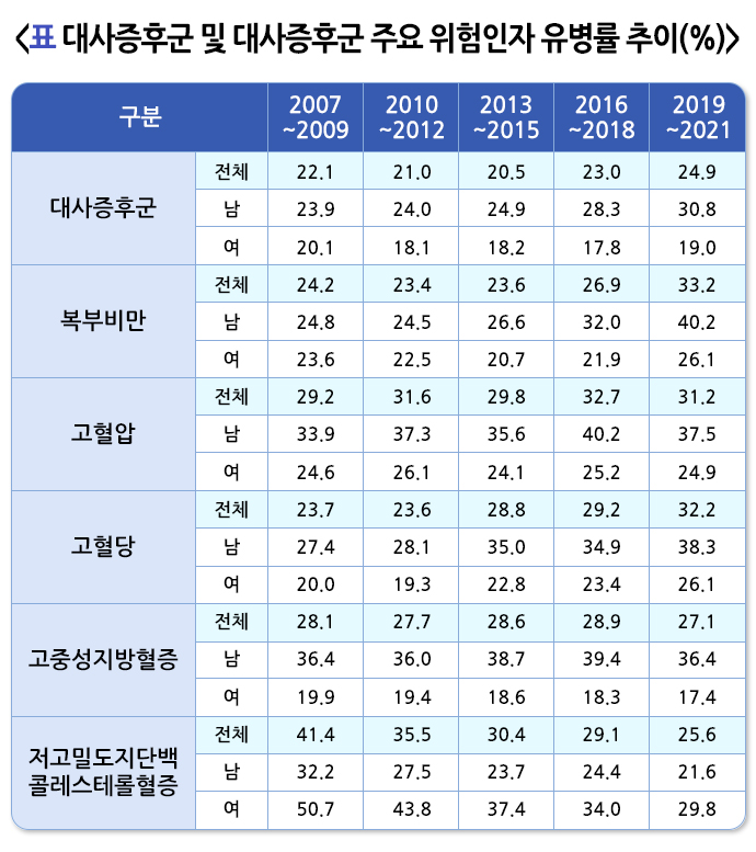 6. 심장대사증후군학회. (2024). 대사증후군 팩트시트 2024 (Metabolic Syndrome Fact Sheet in Korea 2024). 심장대사증후군학회.