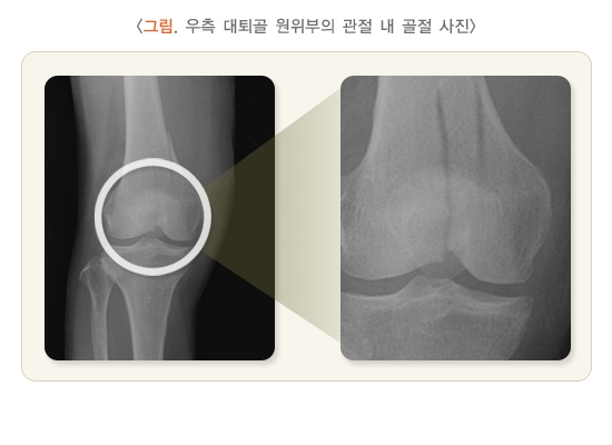 원위(부) 대퇴부 관절 내 골절의 경우 비전위골절(위치가 어긋나지 않은 골절)에서는 부목 고정 등의 보존적 치료를 시행할 수 있으나, 관절면에 전위골절(위치가 어긋난 골절)이 발생한 대부분의 경우에는 관혈적 정복 및 내고정의 수술적 치료가 필요합니다.