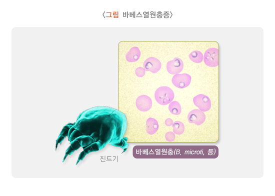 바베스열원충(Babesia spp.) 감염에 의한 발열성 질환입니다.