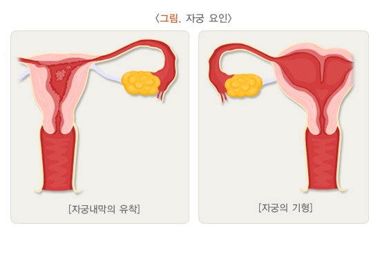 자궁안에 유착이 발생하는 경우, 자궁의 형태에 기형이 있는 경우, 그리고 자궁에 근종이 있는 경우 착상을 방해하여 불임이 발생할 수 있습니다.