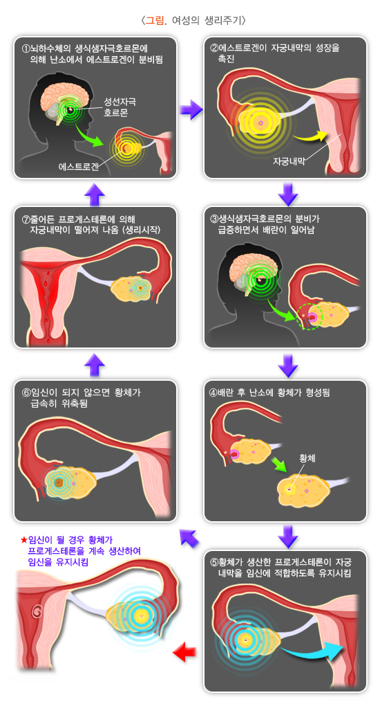 여성의 생리주기는 다양한 호르몬의 복합적인 작용에 의해 주기적으로 반복되는데 불임증에 대한 이해를 위해서는 다음의 기본적인 용어들에 대해 알고 있어야 합니다.