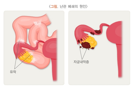 정상적으로 열려 있어야 할 난관이 폐쇄되면 정자와 난자가 만나서 수정란을 만들 수 없기 때문에 불임의 원인이 됩니다.
