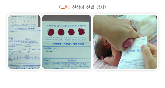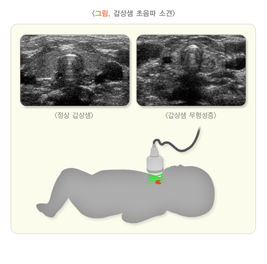 선천갑상샘저하증은 대부분 영아 초기에 증상이 나타나지 않기 때문에 조기에 발견하여 치료하기가 어려워 영구적인 지능 저하를 초래하게 됩니다. 그러므로 조기에 발견하고 치료하여 후유증을 예방하기 위해 신생아 집단 선별 검사가 필요합니다. 신생아 선별 검사는 생후 5~7일에 하는 것이 가장 좋지만, 최소한 갑상샘 호르몬이 성인의 정상치에 가까워지는 생후 48시간 이후에 시행할 것을 추천합니다. 검사 방법은 아기의 발뒤꿈치를 찔러 나오는 혈액을 여과지에 흠뻑 적셔 신생아 선별검사 검사실로 보내면 됩니다. 검사 결과 혈액 내 갑상샘 호르몬(T4 또는 유리 T4)과 갑상샘 자극 호르몬(TSH) 중 한 가지 또는 두 가지 모두 비정상적인 수치가 나오면 선천 갑상샘 저하증을 의심합니다(TSH 10 IU/mL 이상, T4 6.5 μg/dL 이하). 의심되는 경우에는 생후 2~4주에 정밀 검사를 시행하여 확진합니다. 우리나라에서는 모든 신생아에게 무료로 선천갑상샘저하증 선별 검사를 시행하며, 많은 환자가 조기에 발견되어 치료받고 있습니다.